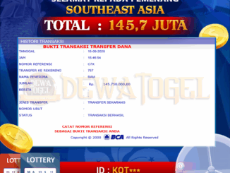 DEWATOGEL JACKPOT TOGEL DI SOUTHEAST ASIA Rp 145.750.000,- LUNAS