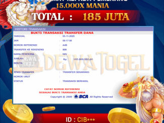 DEWATOGEL JACKPOT SLOT DI 15.000X MANIA Rp 185.000.000,- LUNAS