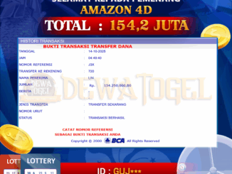 DEWATOGEL JACKPOT TOGEL DI AMAZON 4D Rp 154.250.000,- LUNAS