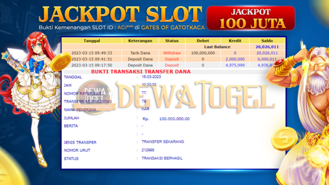 MEMBER DEWATOGEL MENERIMA PELUNASAN KEMENANGAN SLOT GATES OF GATOTKACA Rp 100.000.000,-